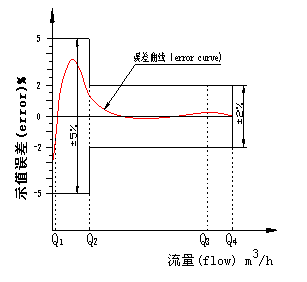 從最小流量到分界流量(不包括分界流量)為±5%。