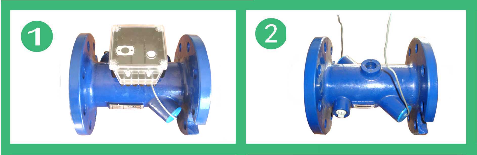 b.樓棟型熱量表超聲波流量計(jì)由表殼、換能器、換能器座組成。順流方向和逆流方向,換能器1或換能器2發(fā)射的超聲波信號(hào)由換能器2或換能器1接收。