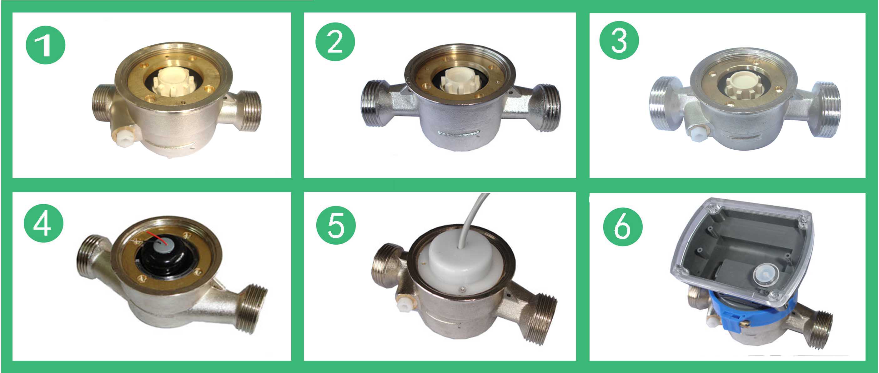 單流束有磁熱量表流量計的結構如圖,其工作原理是:熱水進入流量計,經(jīng)進水導向孔沖擊計量腔內的葉輪旋轉,再經(jīng)出水導向孔流出流量計。葉輪上面嵌有磁鋼隨葉輪旋轉,在隔板上端的韋根遠傳組件,接受葉輪旋轉的周期信號。單流束有磁熱量表流量計的殼體采用優(yōu)質黃銅,經(jīng)金屬模鑄造、數(shù)控機床和組合機床加工,機械強度好、尺寸精度穩(wěn)定一致,塑料零件選用進口的高強度耐熱工程塑料,密封件采用優(yōu)質耐熱材料。因此,該流量計完全能夠適應國內供熱系統(tǒng)的惡劣工作環(huán)境。