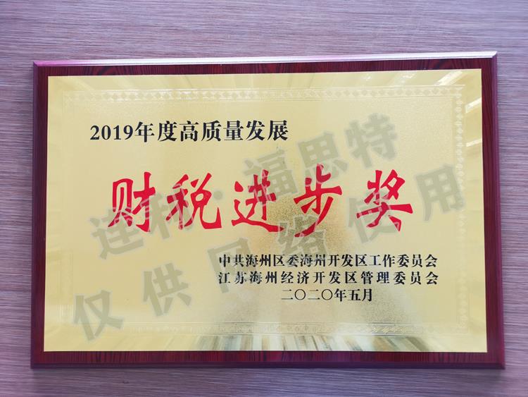 會議觀看了海州開發(fā)區(qū)2019年工作紀(jì)錄片,宣讀2019年度企業(yè)特殊貢獻(xiàn)獎、財稅貢獻(xiàn)獎、財稅進(jìn)步獎、企業(yè)成長獎、安全生產(chǎn)主體責(zé)任落實獎等表彰決定,并舉行頒獎儀式。其中連云港連利·福思特表業(yè)有限公司榮獲2019年度高質(zhì)量發(fā)展“財稅進(jìn)步獎”。
